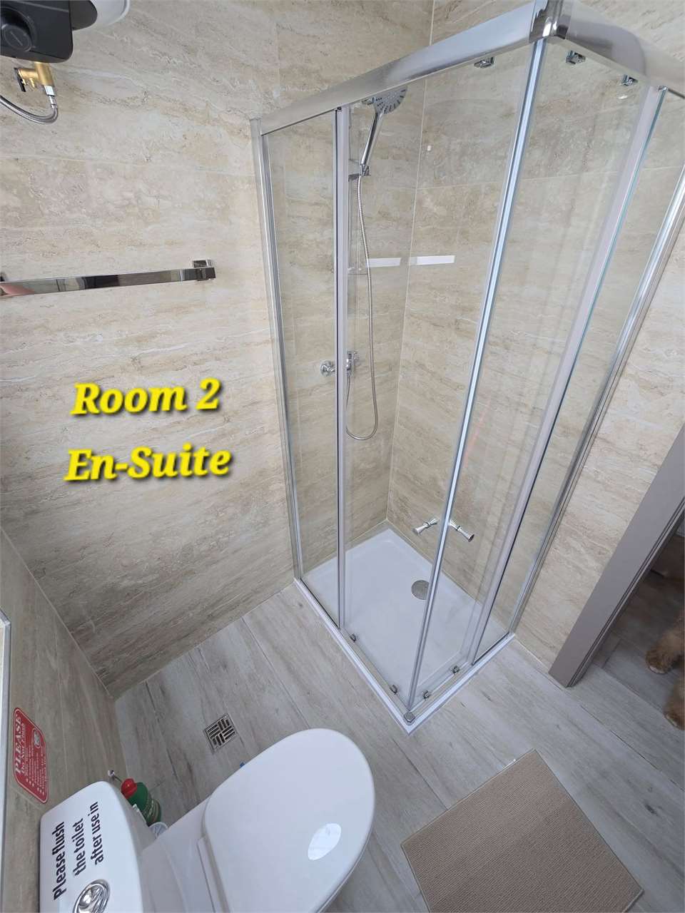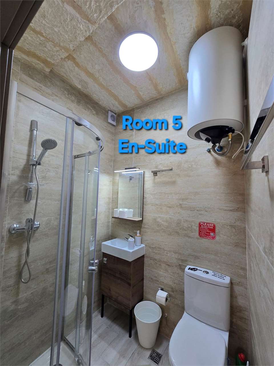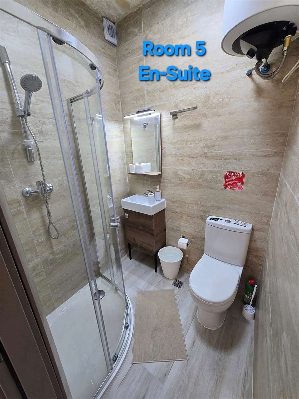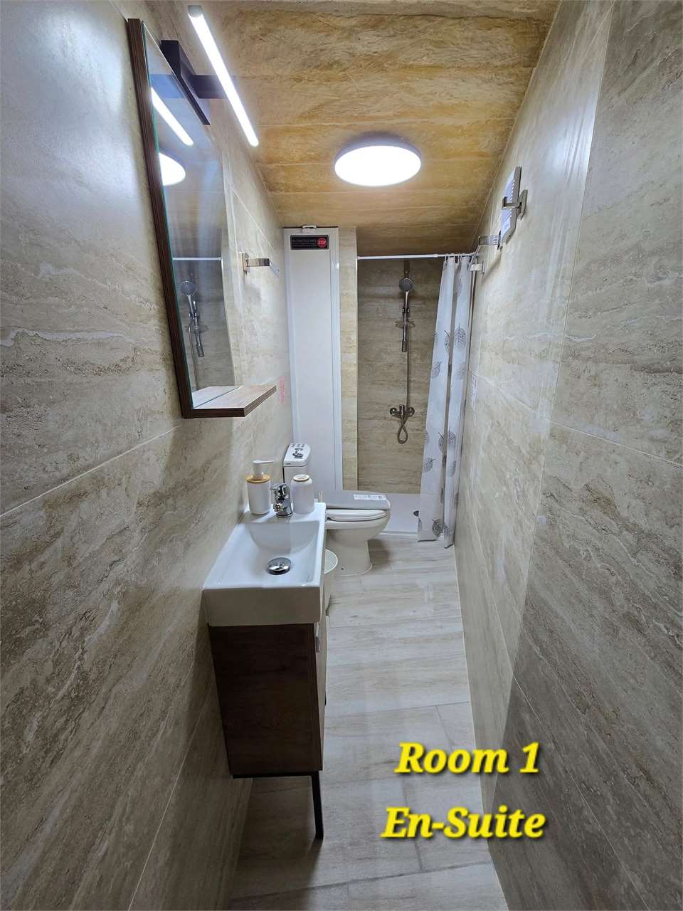 Rooms 4 & 5 can be rented together for a group of up to 4. This area includes its own entrance, kitchen with dining table for 4, guest bathroom, 43″ Smart TV, and a basement cinema room with 70″ TV, soundbar, and a large sofa.
