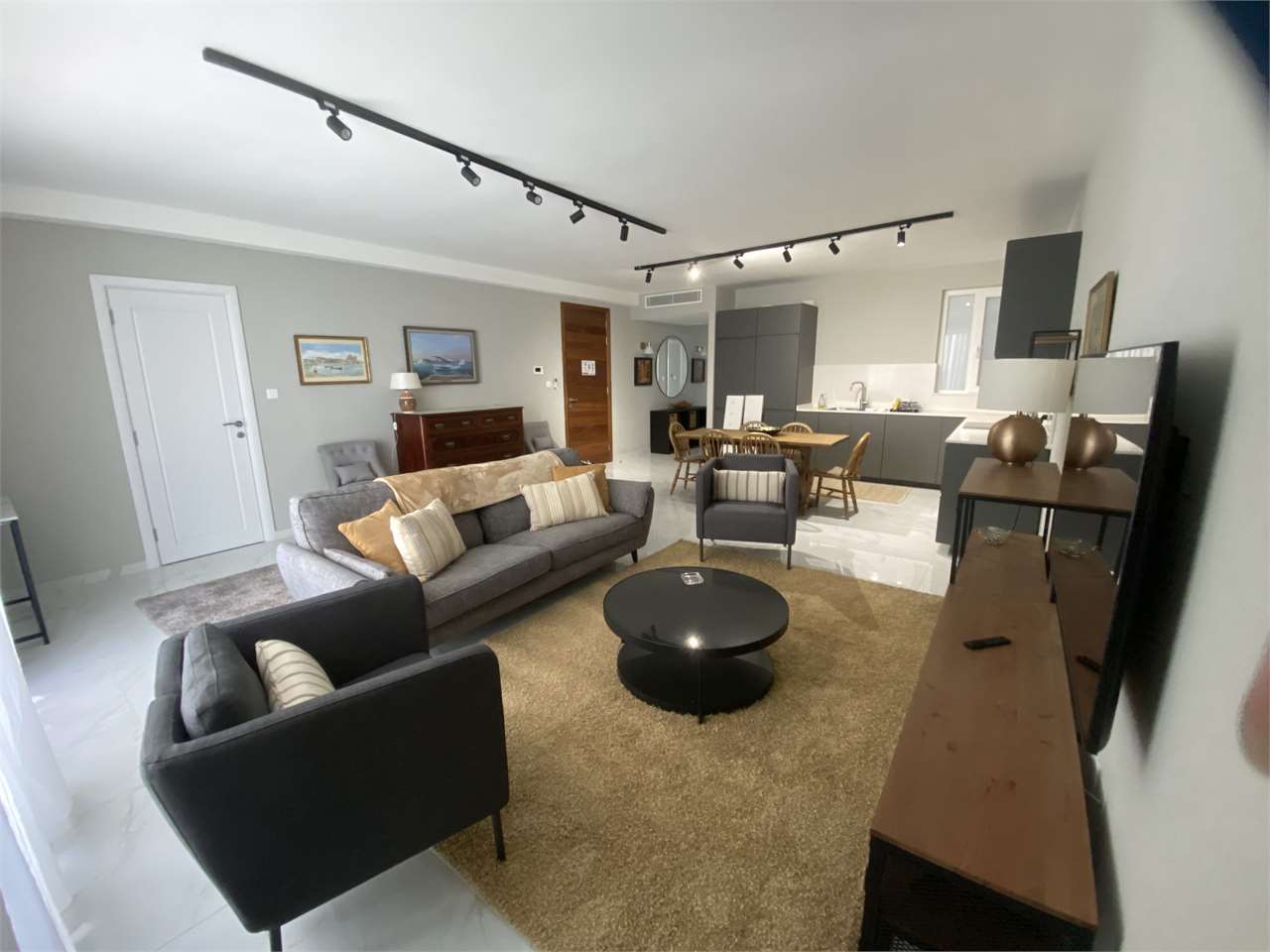 Spacious Open-Plan Kitchen, Living & Dining Area – fully equipped with dishwasher, oven, hob, microwave, fridge/freezer & VRF A/C system