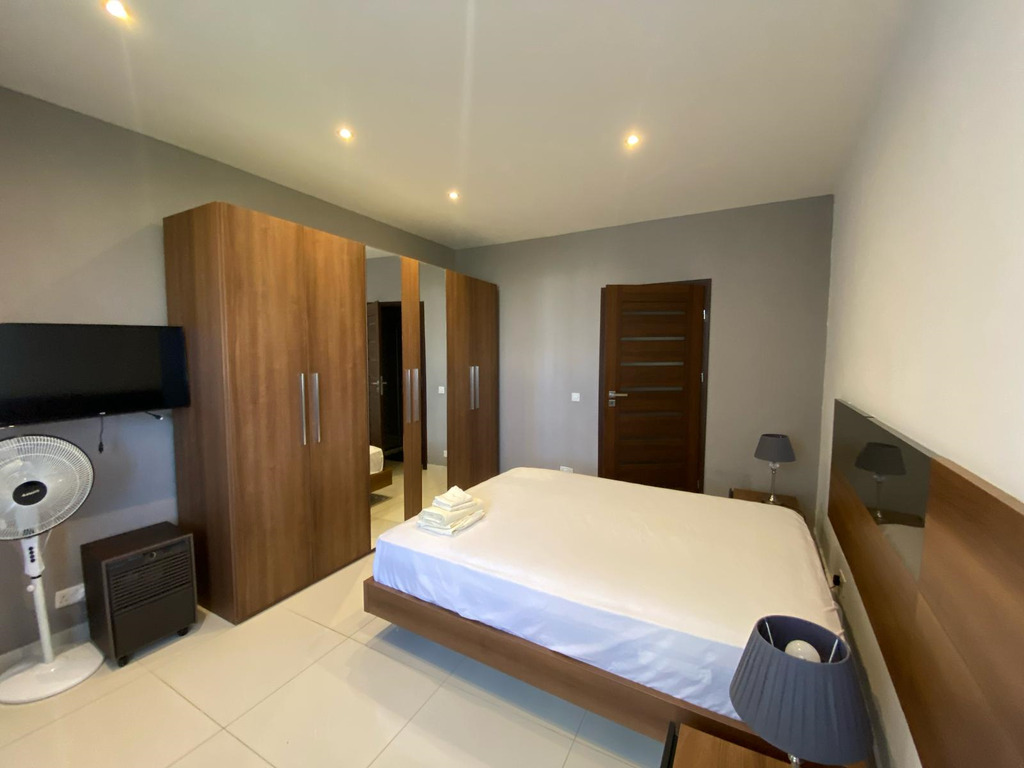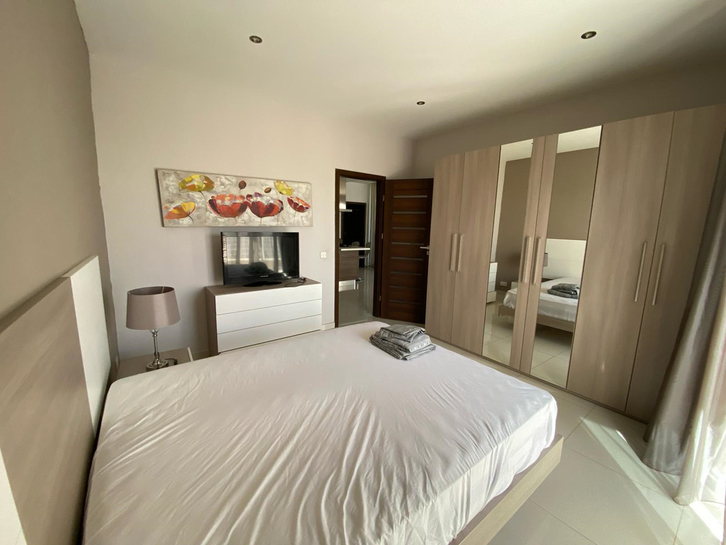 St Julians – A brand new, highly finished and fully furnished apartment in a very quiet area in The Village, St. Julians is available for rent. This beautiful, well-located property consists of a very large, open plan and fully equipped kitchen/living and dining area; a large master bedroom with an en suite; a spare bedroom with twin beds; main bathroom and a small washroom (with both a washing-machine and a tumble-dryer). The property is equipped with 3 ACs and 3 TVs. A smart family-owned apartment block, ideal for a couple.