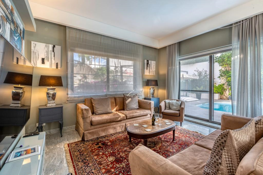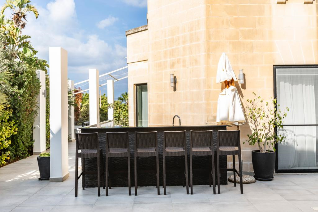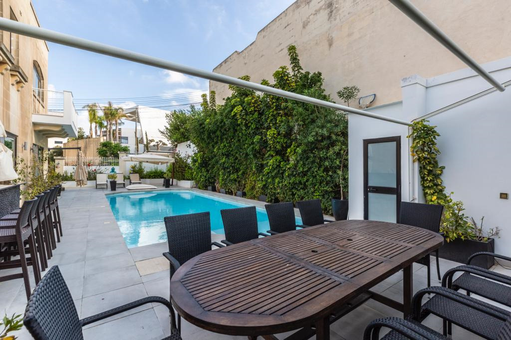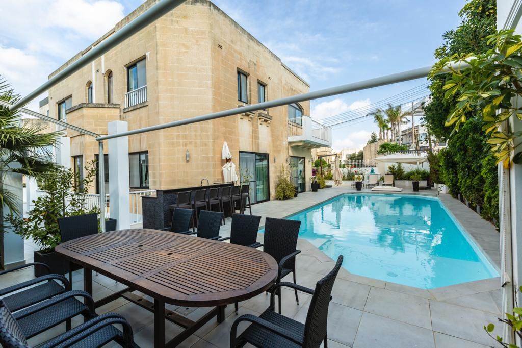 MADLIENA – Set within the prestigious High Ridge area, an exceptional semi-detached villa offering refined living in one of Malta’s most exclusive residential neighbourhoods is on the market for rent. Fully furnished to the highest standards , this outstanding property comprises a bright entrance hall with a skylight, a spacious open-plan living/dining area, a separate formal dining room, a fully equipped designer kitchen, a study, a guest toilet, 4 double bedrooms, 2 en-suite bathrooms, main family bathroom, a laundry room, and a self-contained basement flatlet with two additional bedrooms. The villa also enjoys extensive outdoor space including a swimming pool, landscaped gardens, decking, outdoor bar and entertaining areas, a terrace with distant sea views, a private lift connecting all levels, photovoltaic panels, and a lock-up garage accommodating up to 3 cars. An outstanding opportunity for discerning buyers or families seeking a prestigious, luxurious home in a prime location with exceptional indoor and outdoor living.