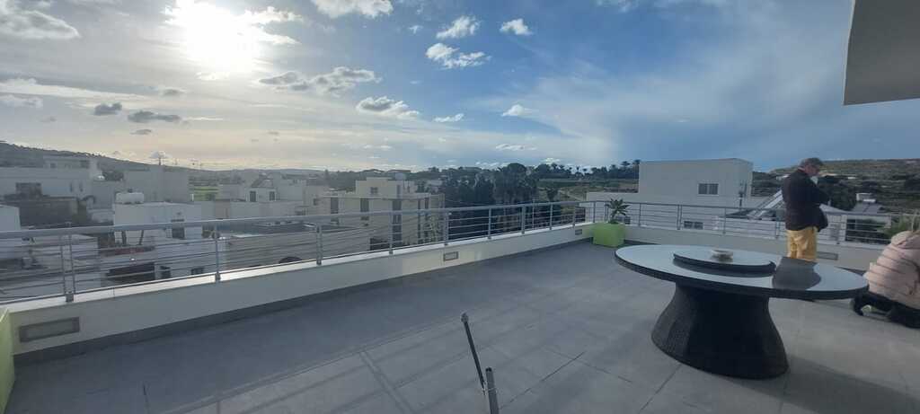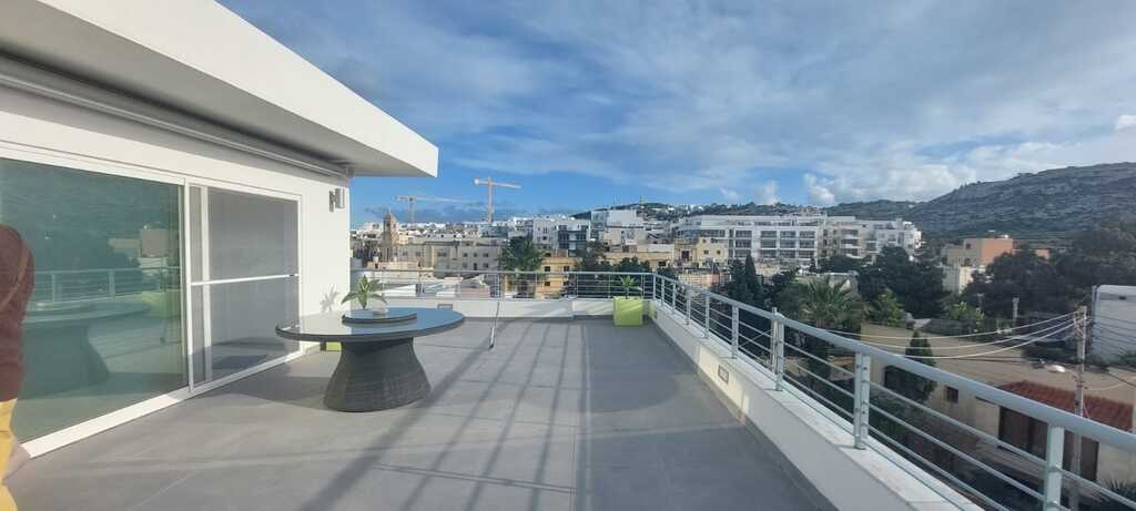 BAHAR IC-CAGHAQ – A beautifully finished and furnished, boutique style semi-detached duplex maisonette in a sought-after villa area, commanding open views and generous outdoor space is on the market for rent. The property comprises a welcoming entrance hall leading to a spacious sitting and dining area; a well-equipped kitchen leading out onto a stunning 60 sqm terrace, ideal for outdoor living and entertaining; 2 bedrooms (master with en suite); a separate study; and main bathroom. A private 2-car garage is also included, offering added convenience. Perfect for couples, remote workers, or small families seeking a stylish and comfortable home in a peaceful and upscale location.
