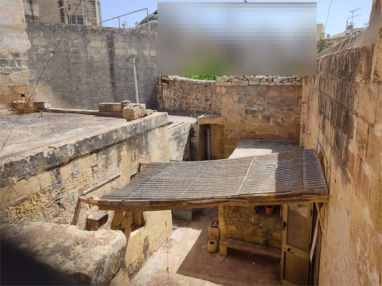 The property is accessed through a long wide passage which possibly could be transformed into a car port, hence it opens in a large squarish layout with rooms surround a large internal courtyard, including own well.