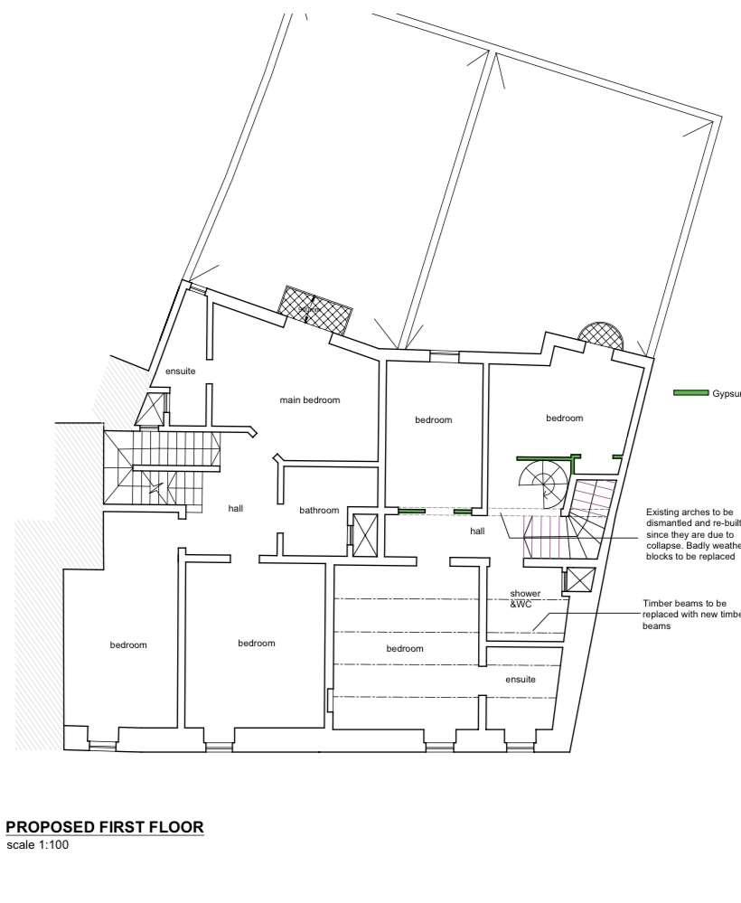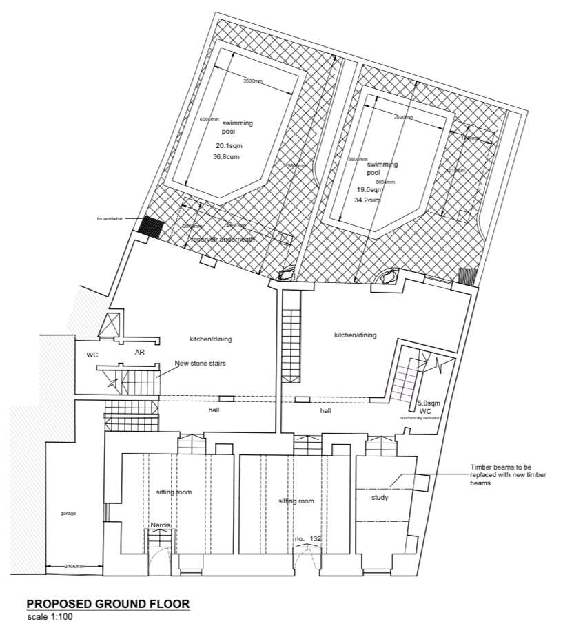 β’ Newly built open-plan kitchen / dining / living area seamlessly connected to the old structure