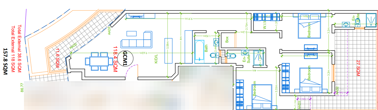 This larger than usual maisonette welcomes you with a front porch, leading to its spacious KLD. The corridor leads you to the main bathroom, a very useful box room and to the three double bedrooms, one of which includes an ensuite and access to the internal yard, the second bedroom also comes with an ensuite and the third bedroom has space for a walk-in wardrobe. At the back of the property, you can find a 27sqm outdoor area, accessed via all the three bedrooms.