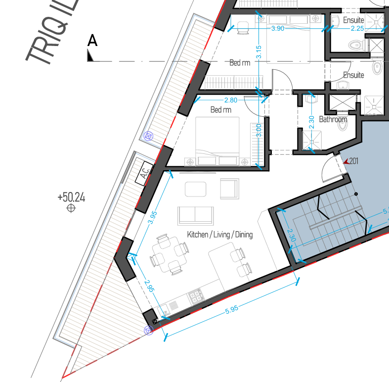 This on-plan second floor apartment in Fgura facing ODZ, offers a modern and functional layout, comprising a spacious open-plan kitchen, dining, and living area, two bedrooms (one of which includes an ensuite), and a main bathroom. The property also features two balconies, providing excellent outdoor space. To be sold in shell form, this apartment allows buyers the flexibility to complete the interior to their preferences. The property is expected to be ready by the end of 2027, making it an excellent opportunity for those seeking a customizable home in a developing area of Fgura. Optional garages are available at an extra price.