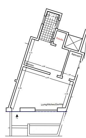 Upon entering one finds a living/kitchen/dining, main bedroom with an ensuite, main bathroom, internal yard.