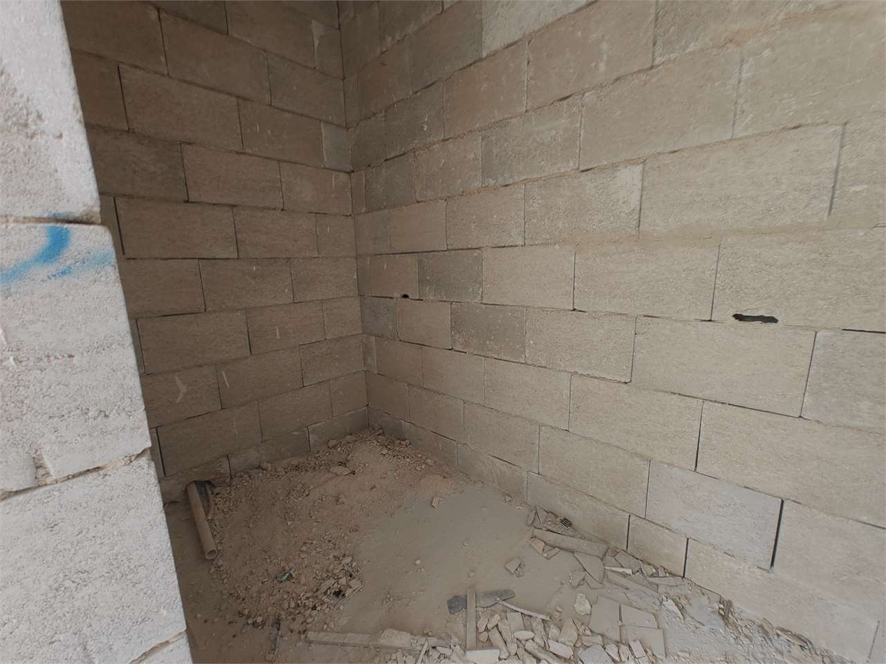 In Ghadira and seconds away from the sea comes a fourth floor, three bedroom finished apartment (excluding bathrooms and internal doors). Upon entering one finds a living/kitchen/dining/terrace, bathroom, boxroom, three double bedrooms (master ensuite), two back balconies.