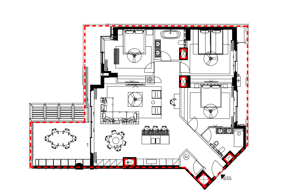 A ready-built, highly finished three-bedroom apartment featuring elegant bathrooms and a modern VRV air-conditioning system.