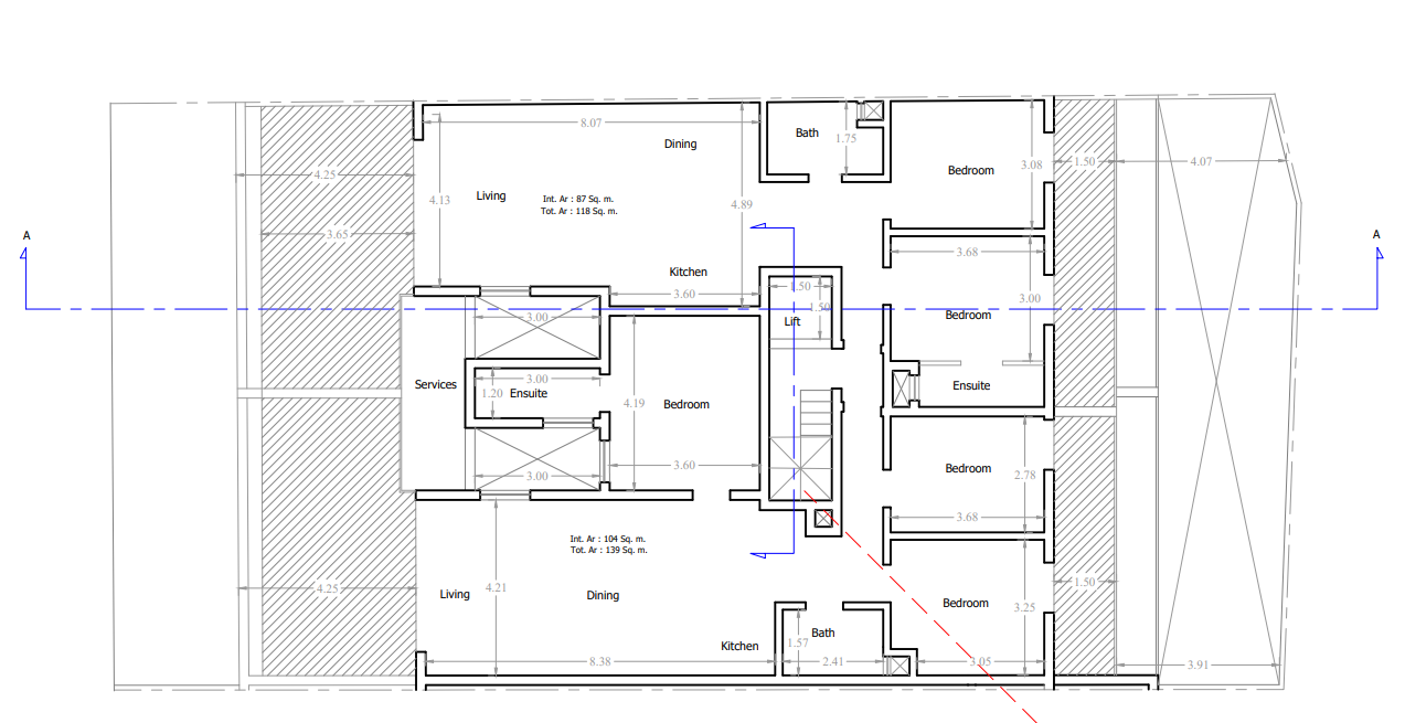 Consists of an open plan kitchen/dining/living with a front terrace, main bathroom, back balcony and three bedrooms, two double and a spare. The master bedroom includes an ensuite bathroom.