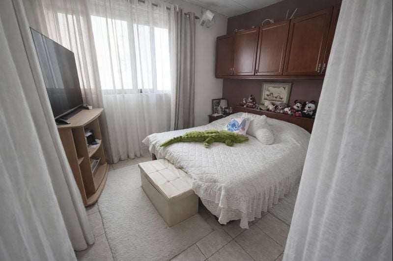 A stairway leads to a second and third bedroom, bathroom, roof and airspace.