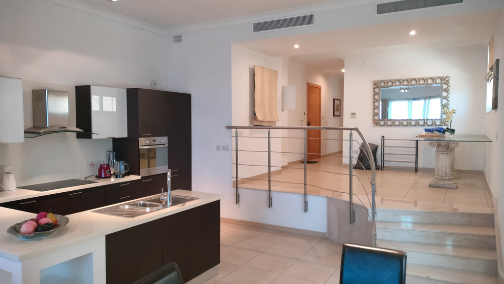 Madliena – A designer-finished, fully furnished PENTHOUSE measuring approximately 260 sqm and situated in a highly sought-after area of Madliena, commanding spectacular sea views and country views as well as the historic ‘Victoria Lines’, is now available for rent. This lavish, well-presented accommodation consists of a bright, open plan, fully fitted kitchen/breakfast area with both a dining area and a separate living area, 3 bedrooms (master with en suite), main bathroom, a study, a washroom and large front terraces, ideal for entertaining. The accommodation is equipped with ac units and central heating and tenants also enjoy a communal swimming pool.