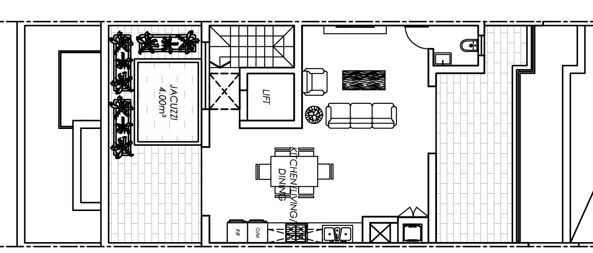 while on the 6th floor one will find a comfortable open plan served with back and front terrace and a toilet room.