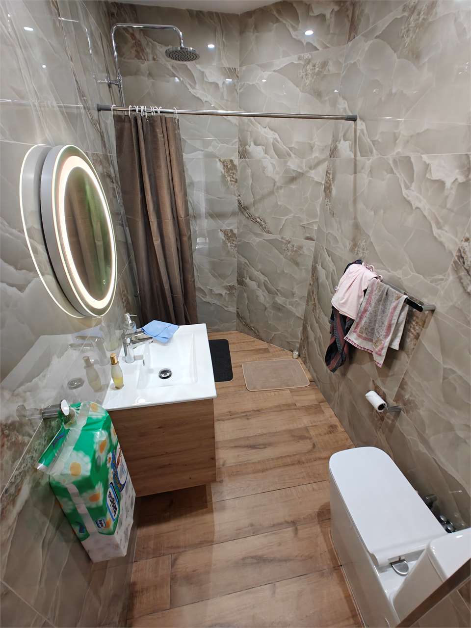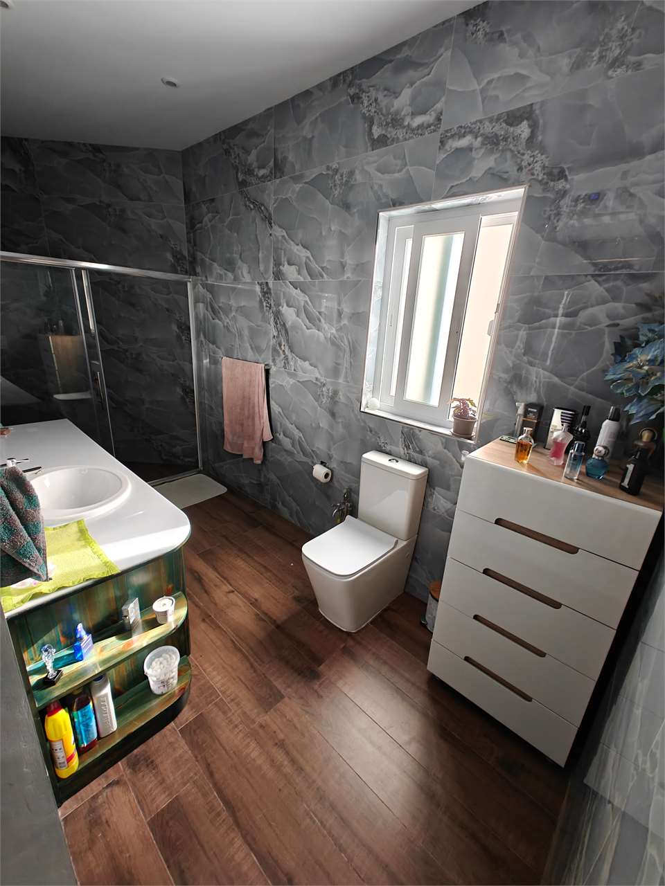 The property layout consists on an entrance hall, a longish open plan which is flooded with natural light , guest rest room, back yard with washroom.