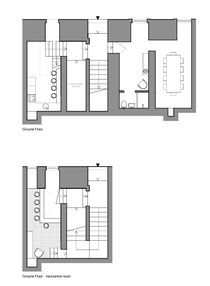 The ground floor comprises an entrance hall, fitted kitchen, bathroom, dining area, and a mezzanine level.