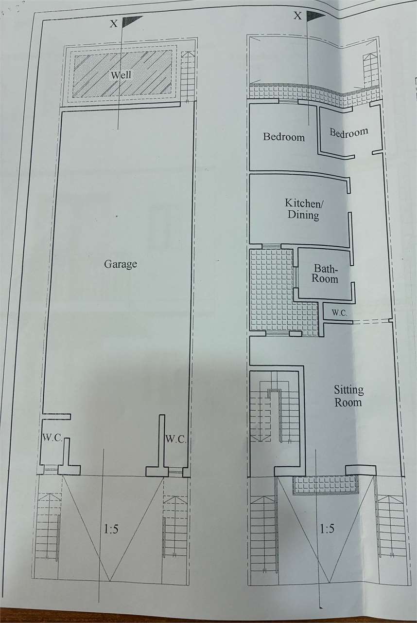 Upon entering one finds a kitchen/living/dining, utility room, internal yard, main bathroom, three bedrooms and a back yard. Including in the price is a 6 car interconnected semi-basement garage.