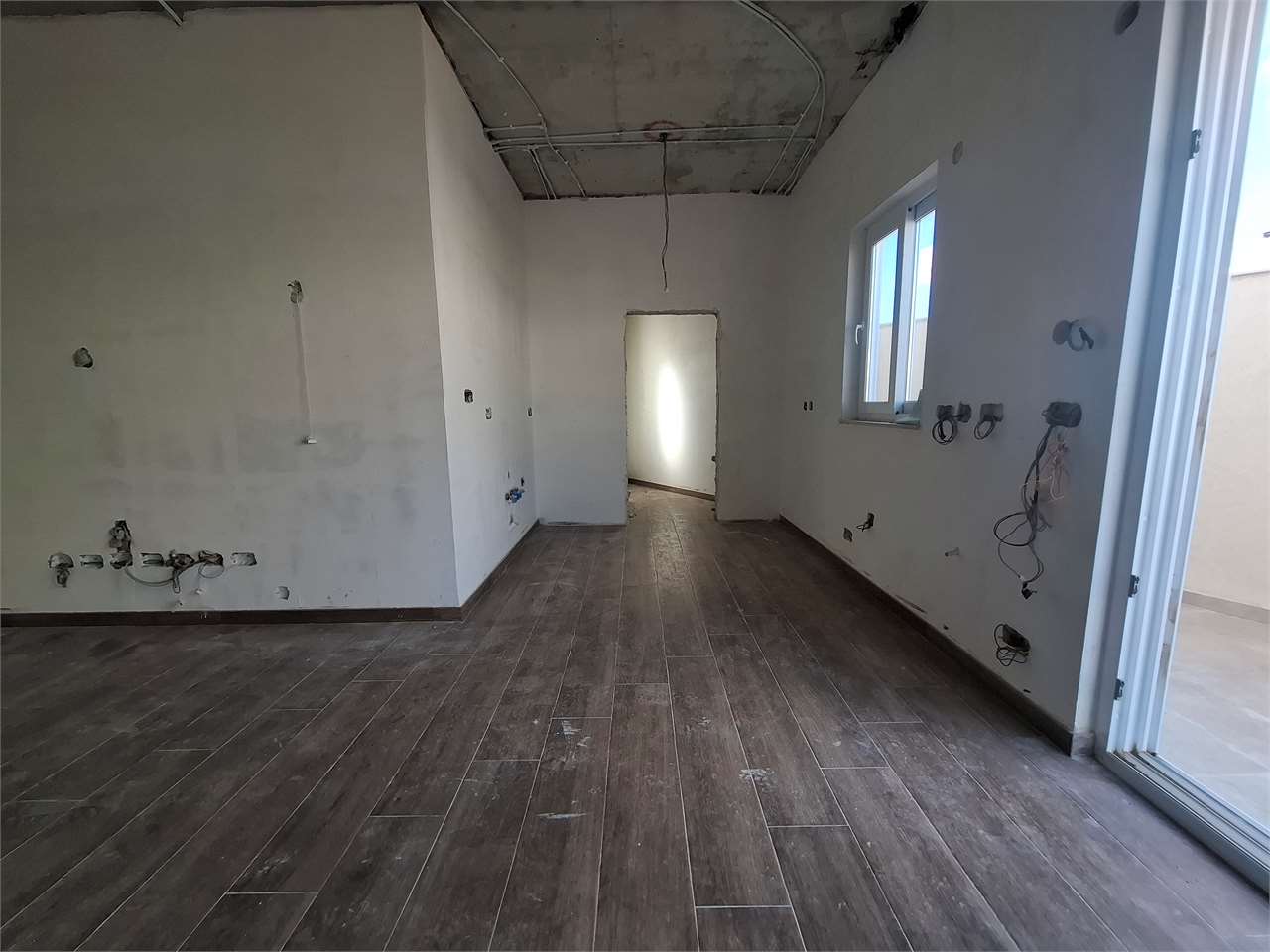 Upon entering one finds a living/kitchen/dining/terrace, bathroom, three bedrooms (master ensuite).