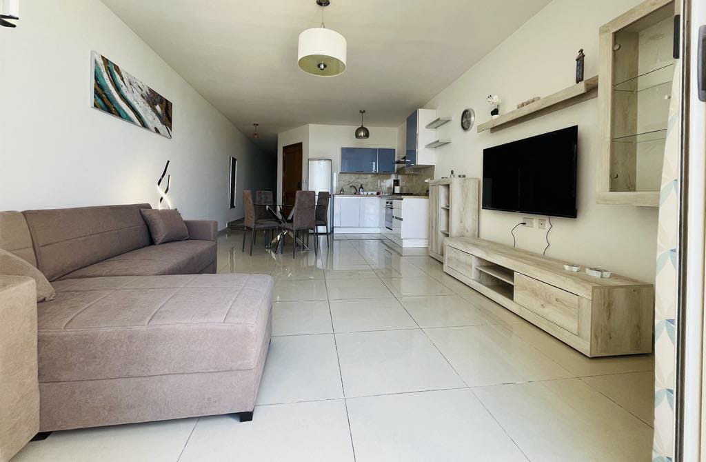 San Gwann – A modern and spacious 100 sqm apartment ideally located in San Gwann, offering both comfort and convenience, is on the market for rent. The property comprises a large open plan kitchen/living/dining area, 2 double bedrooms, and 2 bathrooms, making it perfect for anyone seeking a comfortable living space. The apartment also boasts 2 balconies, one commanding breathtaking valley views, ideal for relaxing and enjoying your morning coffee or unwinding in the evening. With its central location, this apartment is within easy reach of all major amenities, making it a great choice for those seeking a hassle-free lifestyle.