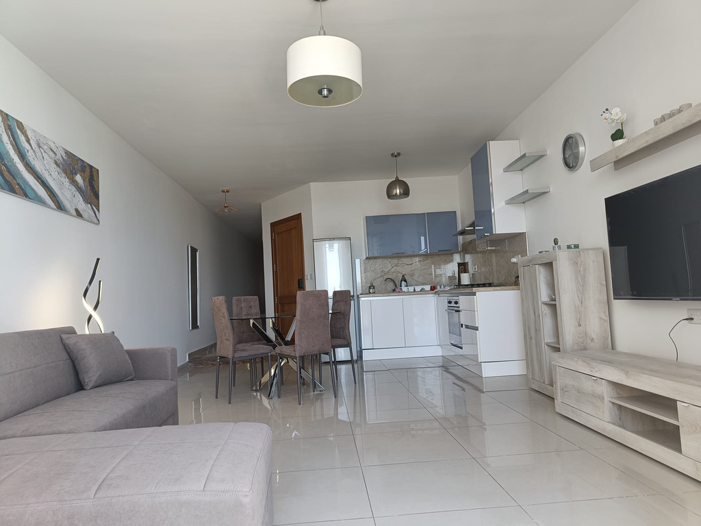 IKLIN – A bright and modern, 2-bedroom, 4th floor apartment in a newly finished block, offering spacious living is available for rent in a well-connected area of Iklin. This beautifully furnished home comprises a very large open plan kitchen/living area with a fully equipped kitchen, TV unit, dishwasher, and air-conditioning, 1 double bedroom (master with en suite, A/C and TV), 1 bedroom with two single beds equipped with A/C and TV, main bathroom with a shower, a laundry room equipped with a machine and tumble dryer, and a terrace surrounding the entire apartment. The property boasts large apertures providing ample natural light. Perfect for single professionals/students, small families or couples looking for a modern, ready-to-move-into home in a convenient location close to all amenities