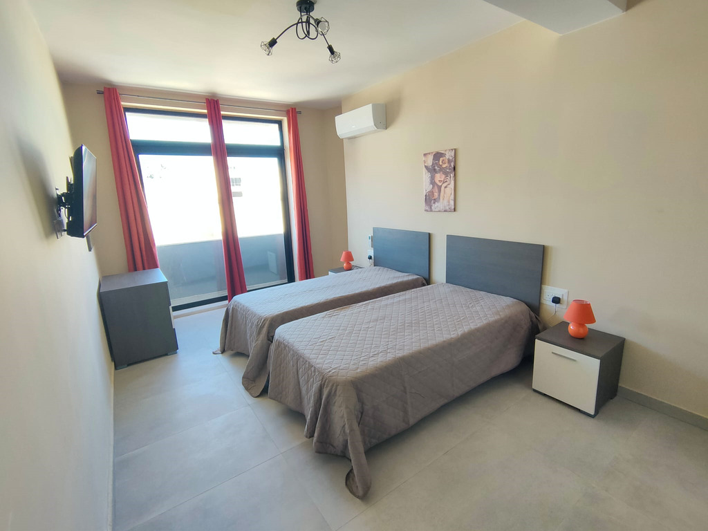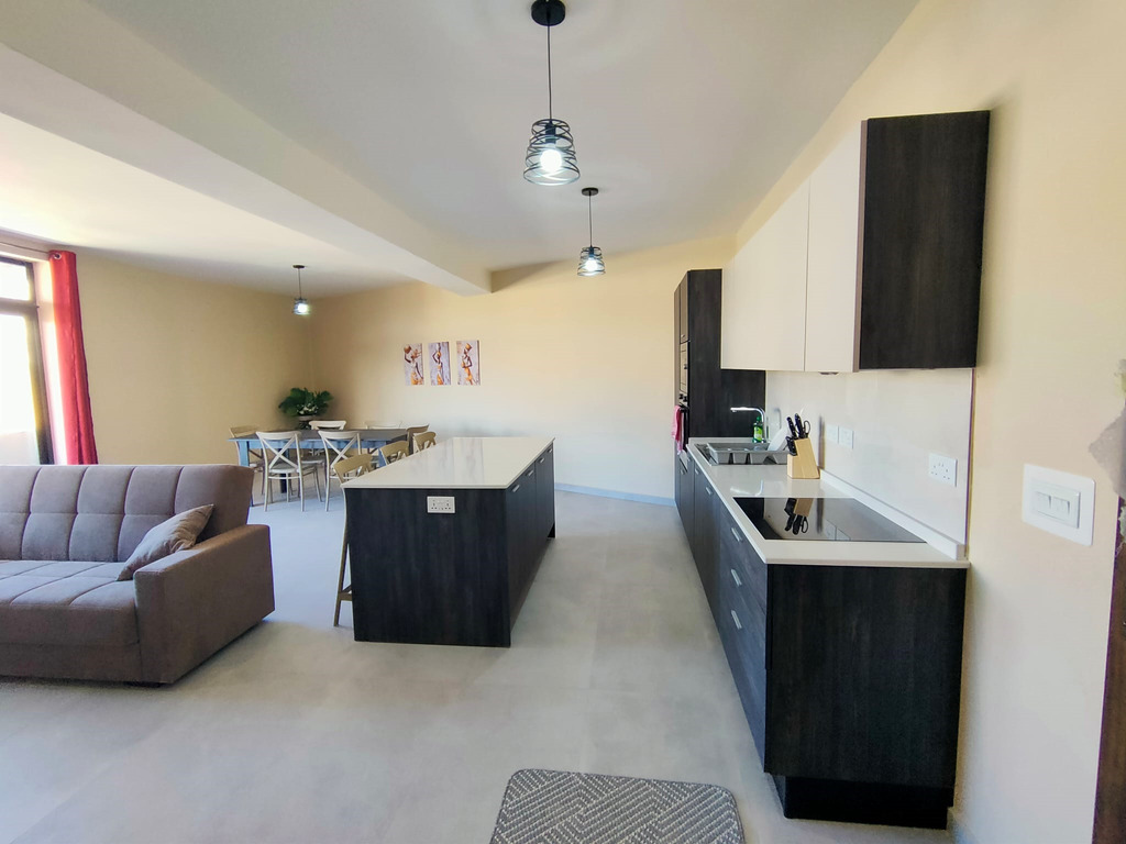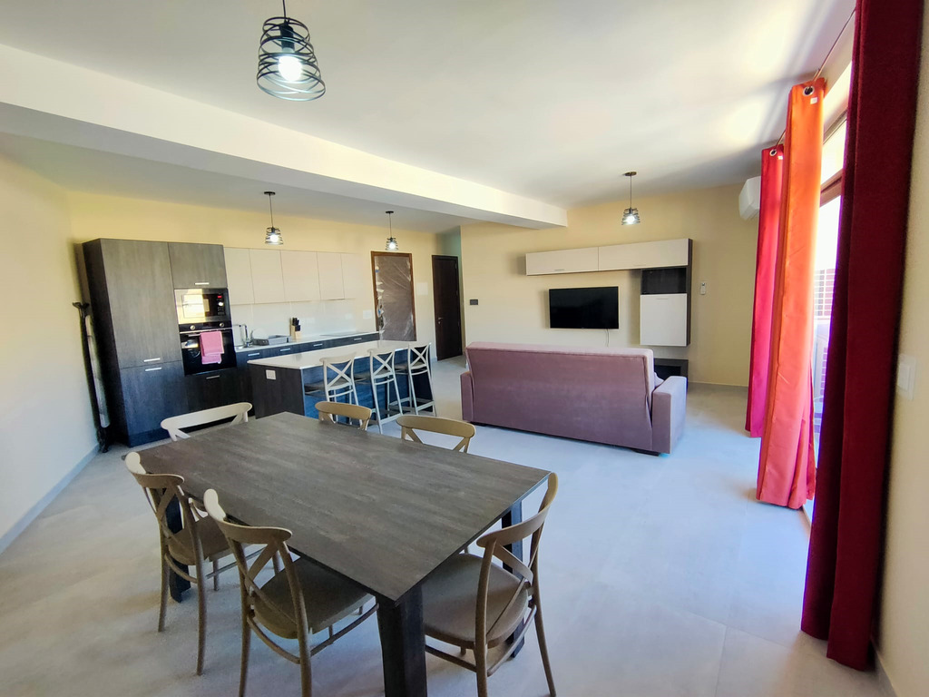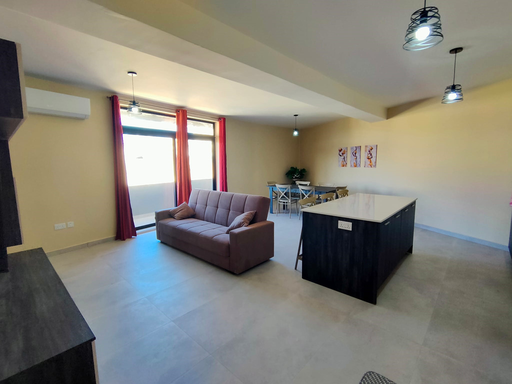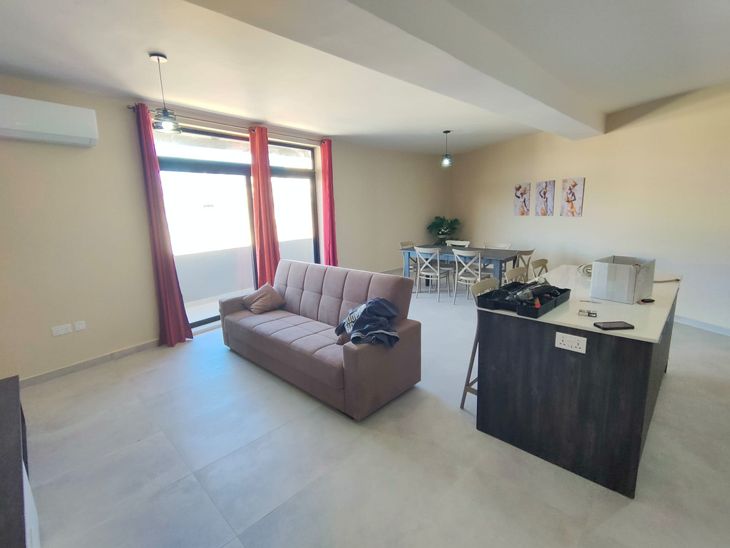 IKLIN – A bright and modern, 2-bedroom, 4th floor apartment in a newly finished block, offering spacious living is available for rent in a well-connected area of Iklin. This beautifully furnished home comprises a very large open plan kitchen/living area with a fully equipped kitchen, TV unit, dishwasher, and air-conditioning, 1 double bedroom (master with en suite, A/C and TV), 1 bedroom with two single beds equipped with A/C and TV, main bathroom with a shower, a laundry room equipped with a machine and tumble dryer, and a terrace surrounding the entire apartment. The property boasts large apertures providing ample natural light. Perfect for single professionals/students, small families or couples looking for a modern, ready-to-move-into home in a convenient location close to all amenities