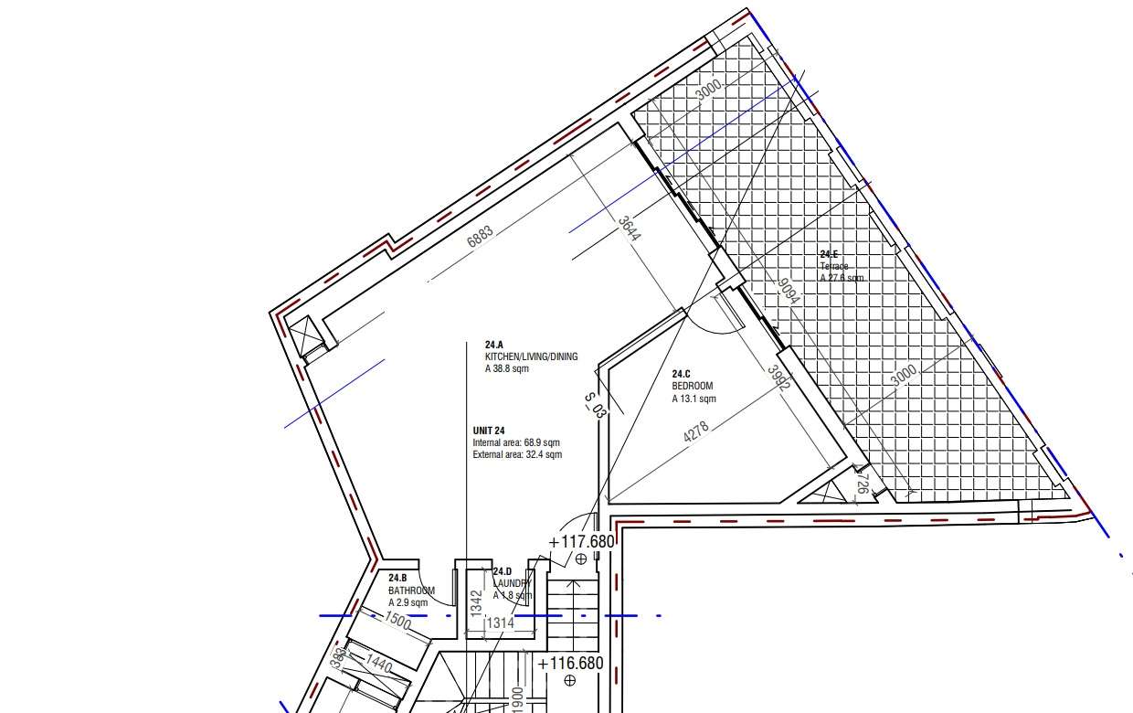 Located in Msida, sixth floor two-bedroom fully finished Penthouse, currently available on plan.
