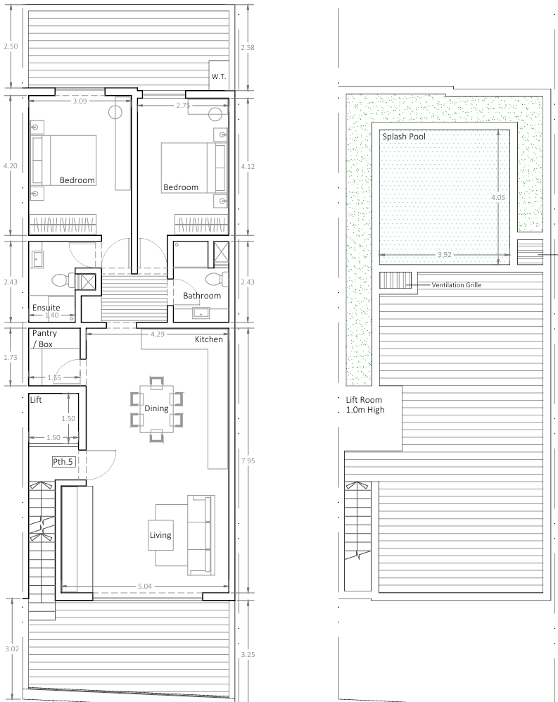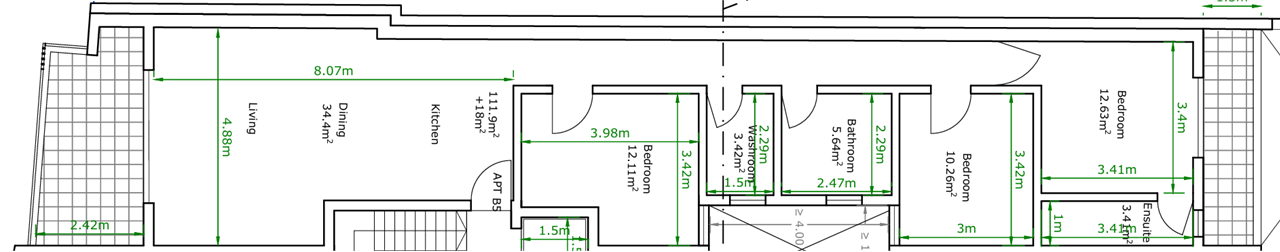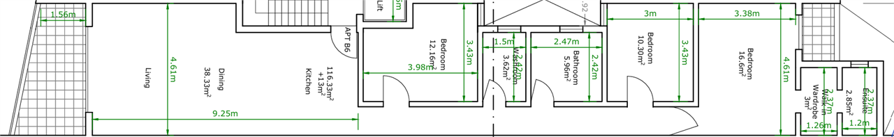 Consists of an open plan kitchen/dining/living with a front terrace, a wash room, and three double bedrooms. The master bedroom also includes an ensuite bathroom and a private balcony.