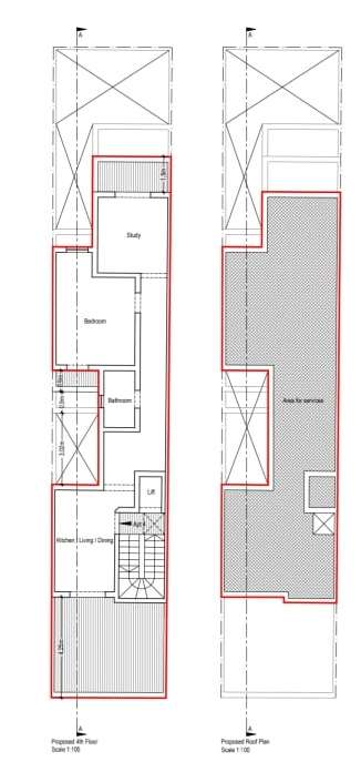 Consisting of a room on the ground floor level. A staircase leads you to floor an intermediate level where one finds a small room which used to be a guest toilet, further more, a landing and two good sized rooms and a bathroom on the first floor level. On the top floor level one finds a storage room and the roof terrace.