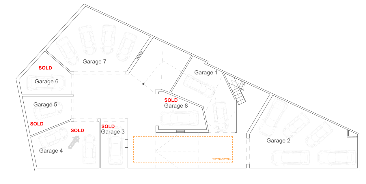 Situated in minus 2 , comes this 5 car garage which is being offered without door.