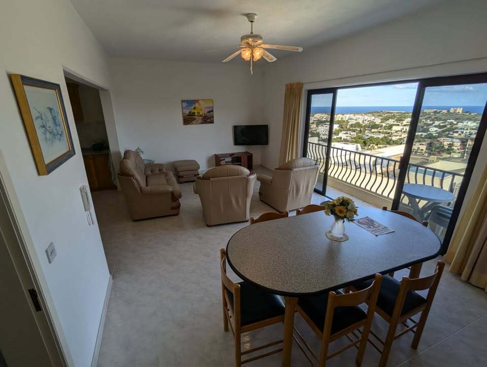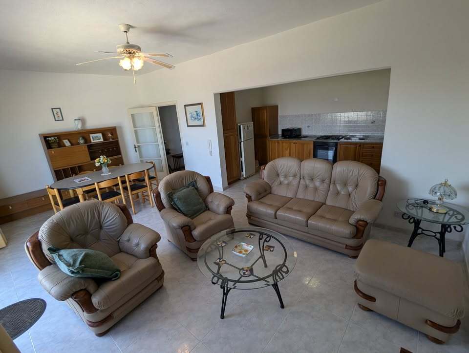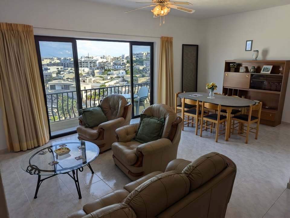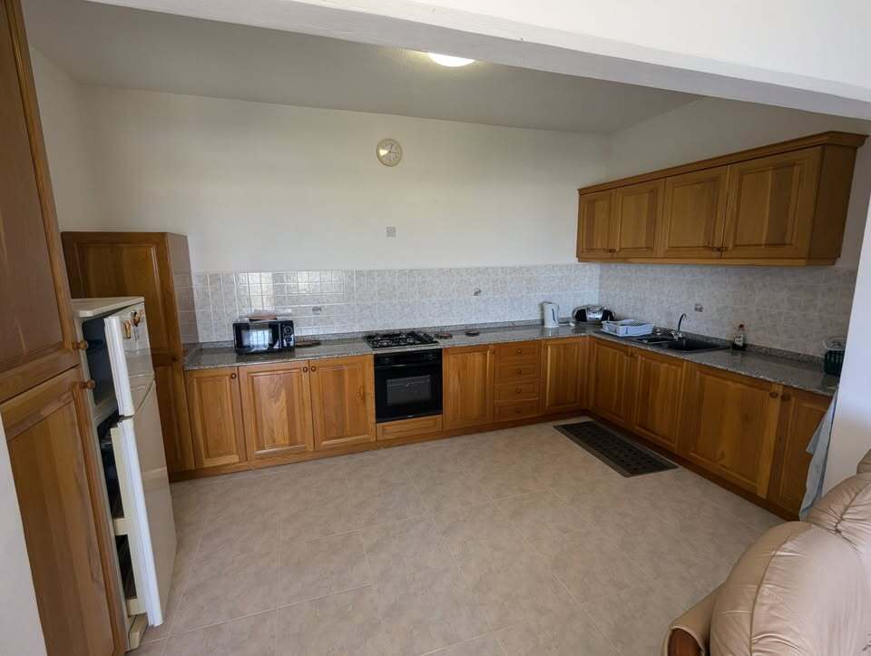 Mellieha – A very spacious 3-bedroom penthouse in the highest area of Mellieha Heights is now available for rent. Commanding breathtaking views of Santa Maria Estate Valley and Selmun Palace, the property comprises a large, open-plan kitchen/living/dining area, 3 bedrooms, 2 brand new bathrooms (1 with a shower and 1 with a bath), front and back balconies enjoying incredible views and free access to a large, shared roof. It is equipped with a brand new AC, a microwave, an LED TV, and a washing machine. Conveniently located a mere 100 m from a bus stop and 50 m from the nearest grocer/bakery. Not pet-friendly. Ideal for a large family.