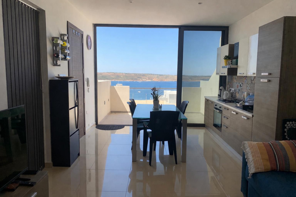 MELLIEHA – A beautifully presented, fully air-conditioned 2-bedroom penthouse enjoying stunning sea views and modern living in a sought-after area of Mellieha is now available for rent. This bright and spacious property comprises a large open plan kitchen/living/dining area, 2 bedrooms, 2 bathrooms, and 2 large terraces ideal for entertaining, along with full roof access complete with a jacuzzi. This modern home is fully furnished and finished to high standards throughout. This stylish seafront home with excellent outdoor space is ideal for a single professional or a couple seeking comfort and luxury living.