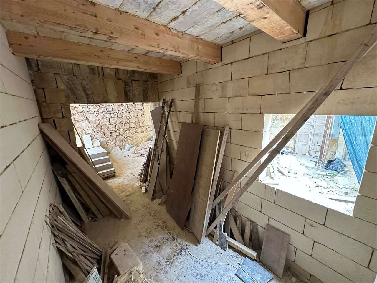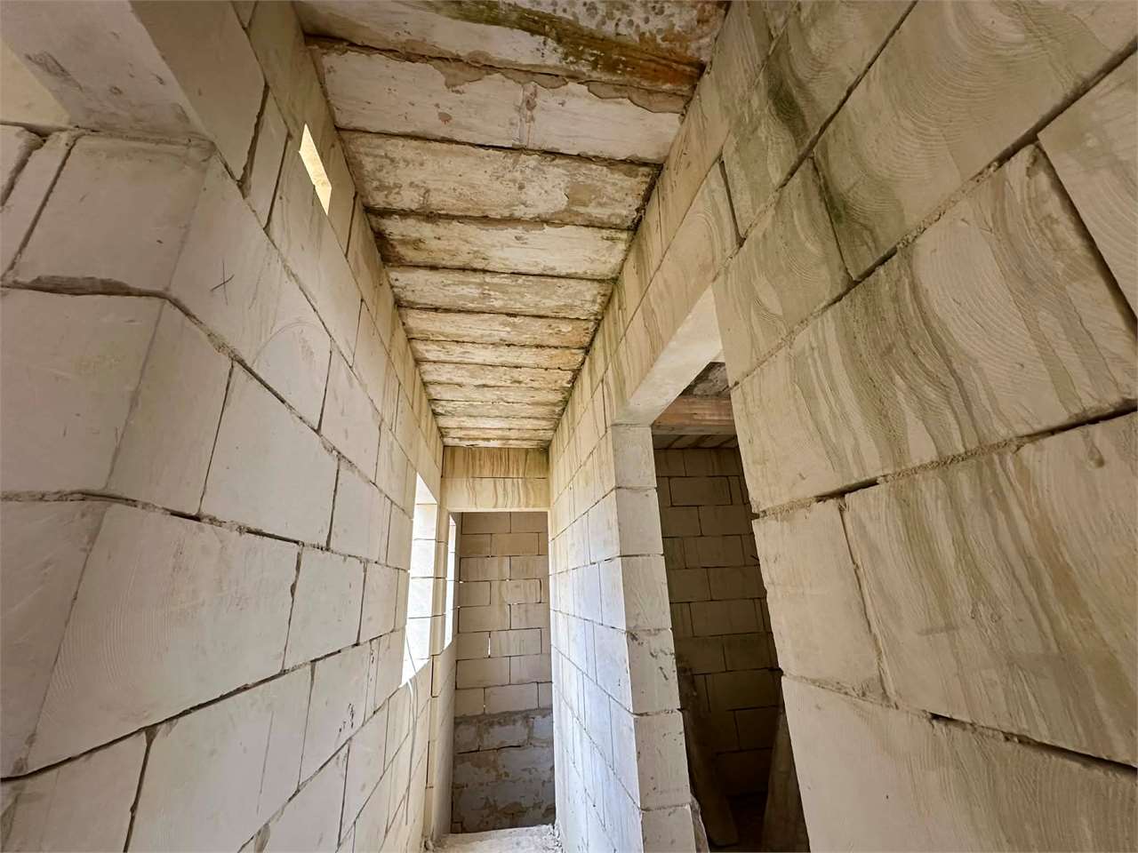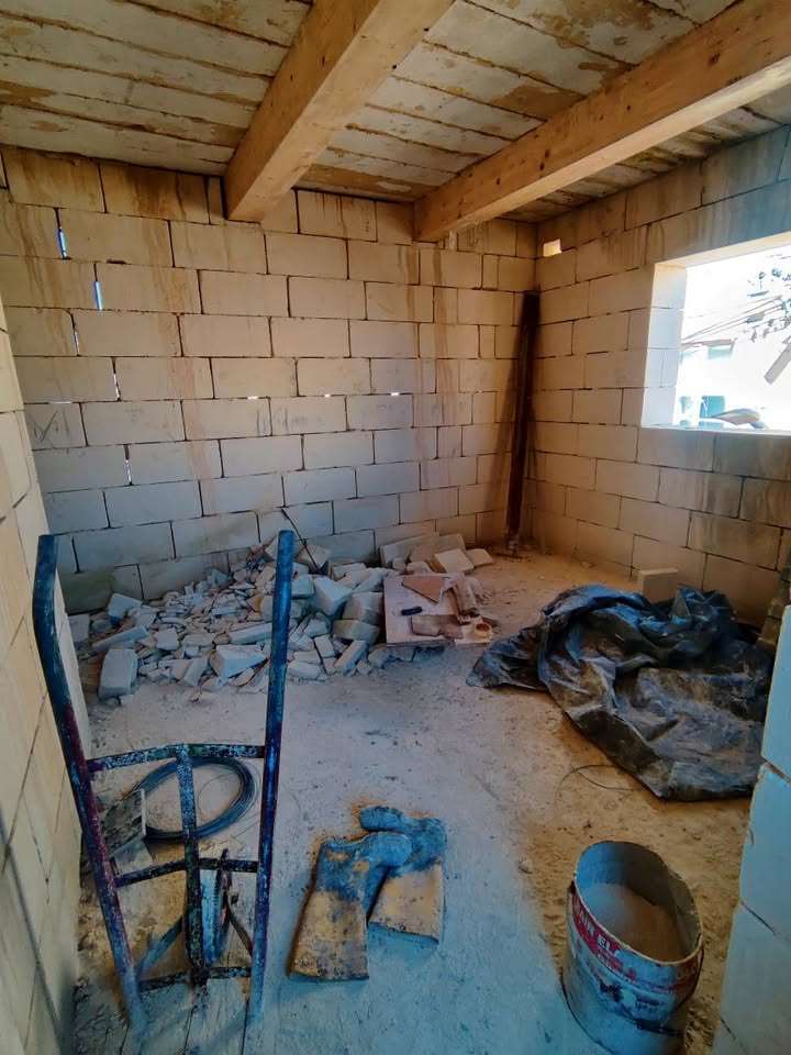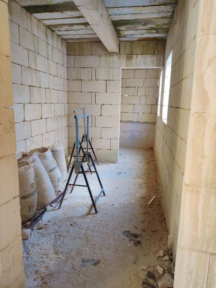 A 3-bedroom house of character offered in shell form, ideal for customization. The property features an open-plan kitchen, dining, and living area, a guest bathroom, and a spacious courtyard.
