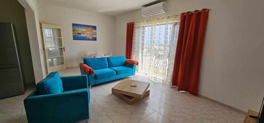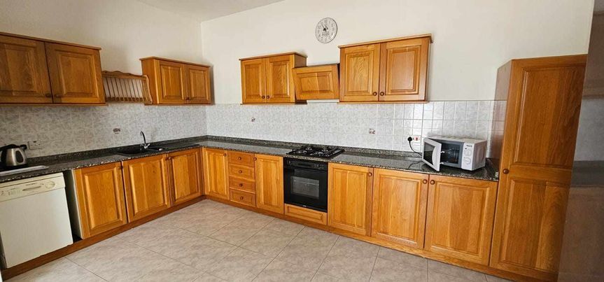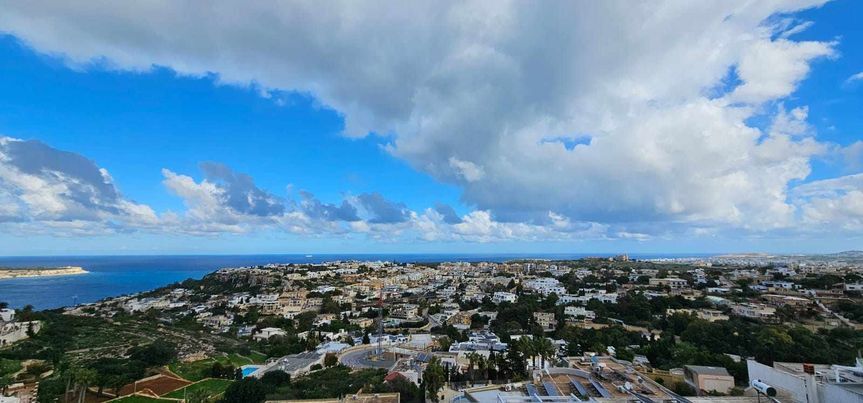 Mellieha – A spacious 2nd-floor apartment in the quiet residential area of Mellieha Heights is now available for rent. Located a mere 100 metres away from all shops and amenities, the property comprises a large, open kitchen/living/dining area, 3 bedrooms (master bedroom with an en suite bathroom; a twin bedroom with another en suite bathroom and a single bedroom) and a balcony boasting both sea views and country views. The kitchen/living/dining area and the master bedroom are air-conditioned. The property is bright and airy throughout, with communal cleaning available for €120 per year.