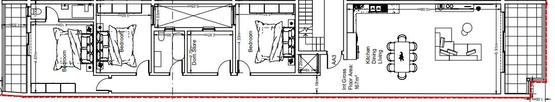 The layout comprises of an open plan kitchen/dining/living leading to a front balcony, main bathroom, a laundry room and three double bedrooms. The master bedroom includes an ensuite bathroom and is connected to a private balcony.