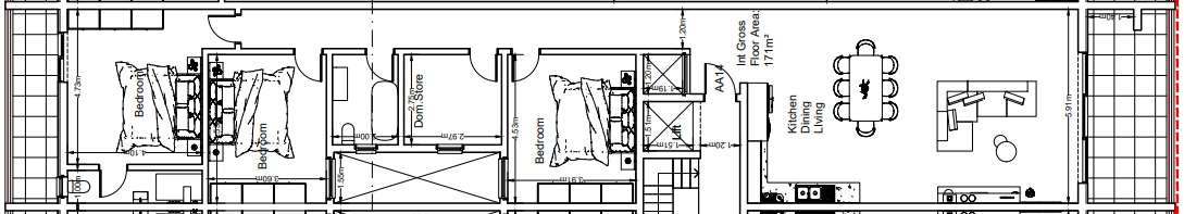 The layout comprises of an open plan kitchen/dining/living leading to a front balcony, main bathroom, a laundry room and three double bedrooms. The master bedroom is connected to a balcony and includes an ensuite bathroom.