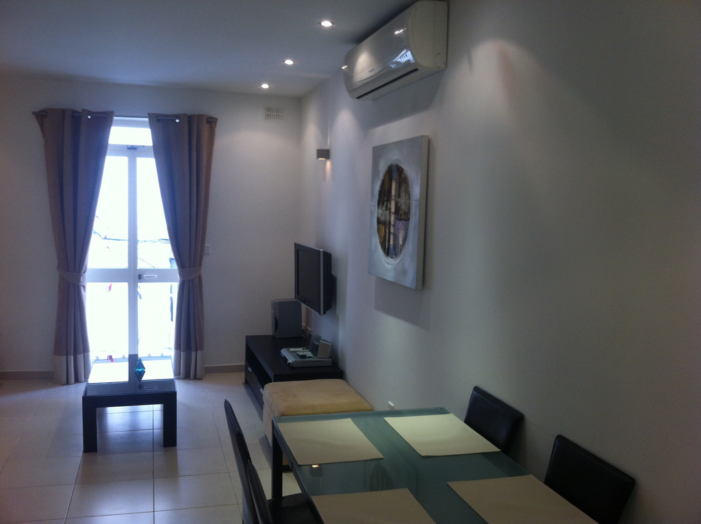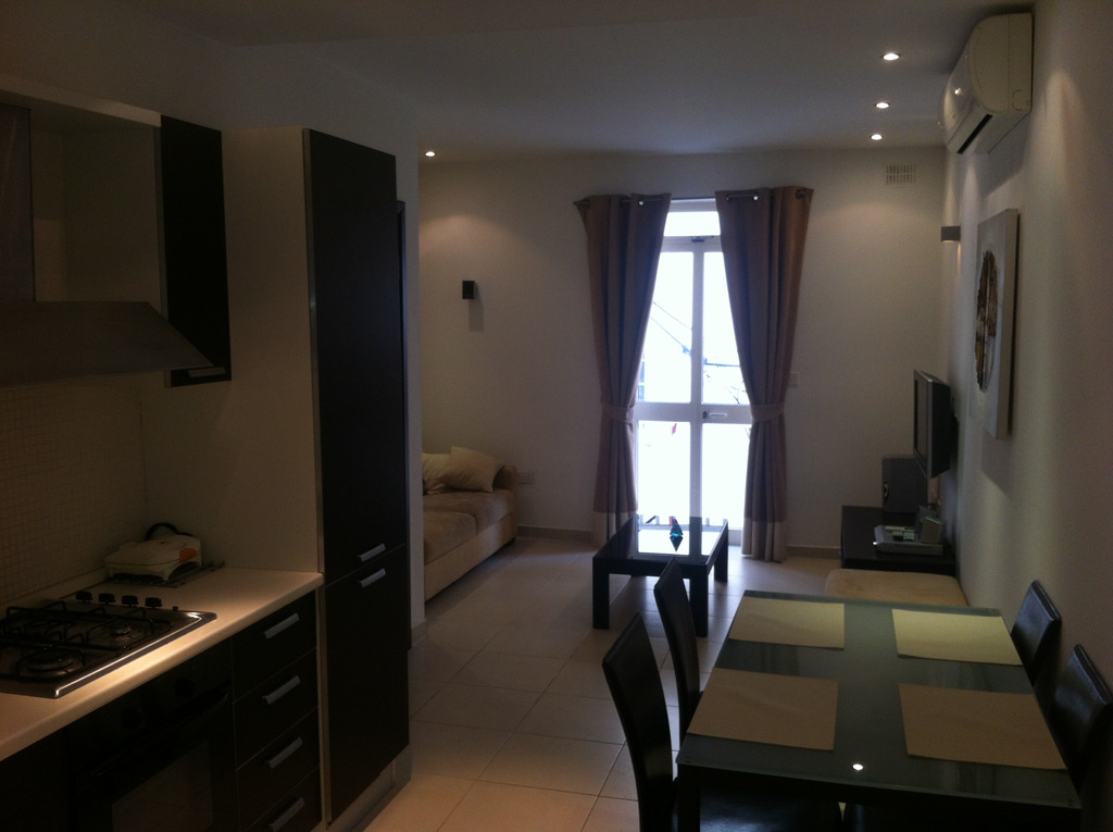 ST. JULIANS – A very well-presented, modern ground floor 1-bedroom apartment measuring approximately 45 sqm, ideally located in a charming street just off Balluta Bay and within walking distance of all amenities is on the market for rent. This bright and well-kept property comprises an open plan kitchen/living/dining enjoying side sea views, 1 double bedroom leading out onto a backyard, and a complete shower room. The apartment is fully equipped with a flat screen TV and washing machine, and is situated a mere 50 metres from the sea, main shops and a bus stop. This well-located, modern home close to the sea is ideal for a single professional or a couple looking for comfortable coastal living.