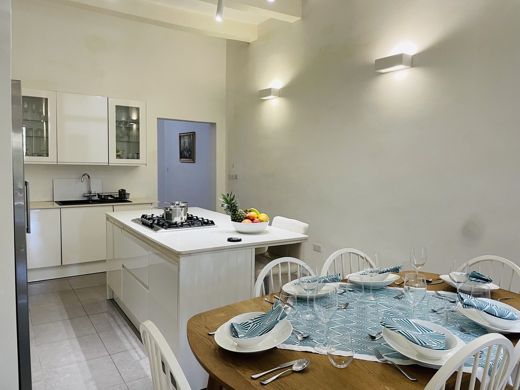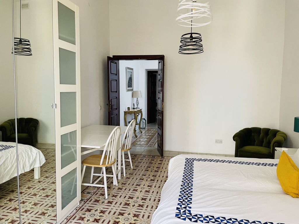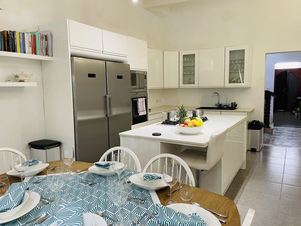 St Julians – A beautiful, charming and larger-than-usual, impeccably designed 4-bedroom terraced house in a quiet area of St Julians, recently renovated and surrounded by all amenities is currently available for long let. Commanding outstanding valley views, this charming, traditional Maltese property consists of a kitchen/ living/ dining area and a beautiful internal yard, 4 bedrooms (master with en suite) and 2 bathrooms. The property enjoys two back terraces, ideal for bbqs and chill-out purposes. Fully furnished and equipped with AC units and new appliances.
