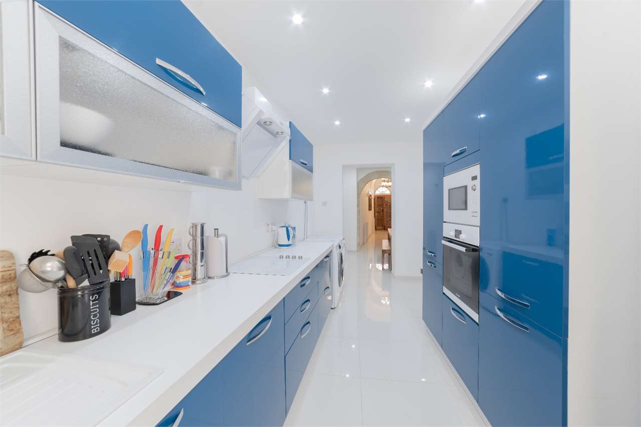 NAXXAR – Highly Converted Townhouse in an urban conservation area. Set in the heart of Naxxar and just off the Parish Church, this fully converted and furnished four-bedroom townhouse is ready to move into. Upon entering one finds a living area, with the possibility of converting into a street level garage, staircase leading to the first floor, a fully fitted kitchen, yard, and a guest bathroom. On the first floor one finds three bedrooms and a main bathroom. On the second floor one finds a fourth bedroom with another bathroom. The third floor includes a washroom area that can easily be transformed into an additional bedroom or entertaining area, complemented by a shower and a yard which will soon be upgraded to include a pool. At roof level, the property enjoys an open terrace with unobstructed views, ideal for entertaining.