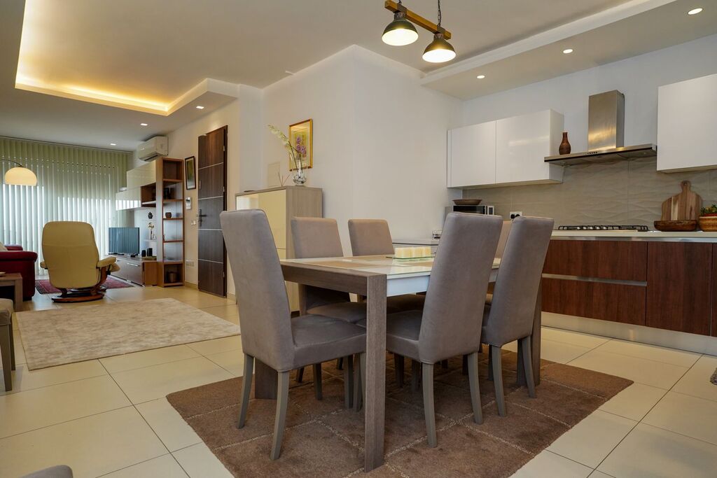 Modern apartment in the quiet area of Naxxar. The fully furnished residence features three spacious double/twin bedrooms – the main bedroom has a walk-in wardrobe.