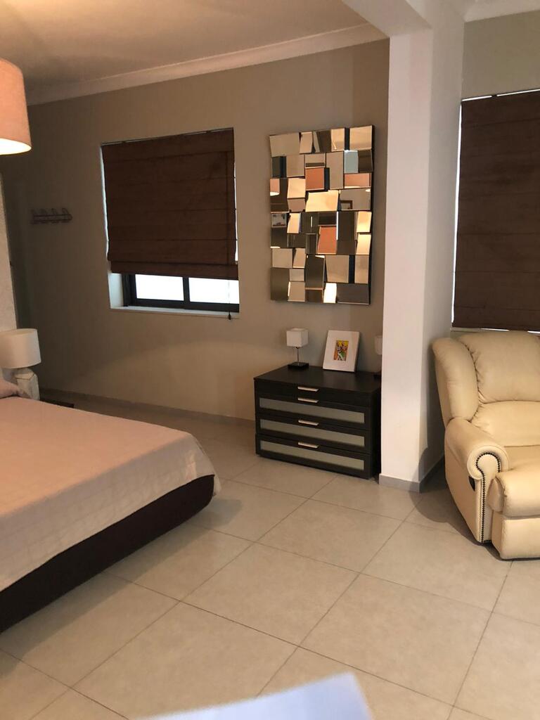 St Julians – A fully furnished and equipped PENTHOUSE in a lovely location in St Julians, just off the seafront. Comprising an entrance hall, an equipped kitchen, a sitting / dining area (with parquet flooring), 2 bedrooms (master with en suite), a separate bathroom and 2 terraces (1 with spa). The property is equipped with air-conditioning and a 40″ TV. Complementing the property is an optional interconnecting garage.