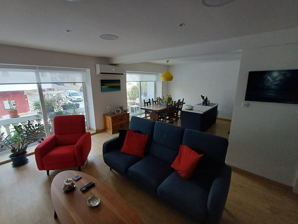 Mellieha – A recently renovated apartment in the sought-after Mellieha Heights area is now available for rent. Situated in a quiet residential neighbourhood, a mere 100 m from shops and amenities, this property offers both comfort and practicality. Comprising a very spacious open-plan kitchen/dining/living area leading out to a terrace boasting fantastic sea views and country views overlooking Santa Maria Estate; 3 bedrooms (master bedroom with a double bed and an en suite shower; 2 bedrooms with twin beds) and a separate shower/bathroom. The property is airy, filled with natural light, and includes air- conditioning in the kitchen/living/dining area and the main bedroom. It includes common parts expenses but excludes cleaning service (€420 per year). An ideal home for a small family.